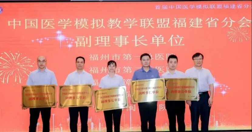 福建省分会理事长陈建武教授为副理事长单位授牌,包括福州市第一总医院、福州市第二总医院、福建省漳州市医院、宁德市闽东医院、莆田学院附属医院等单位的代表上台接受牌匾。